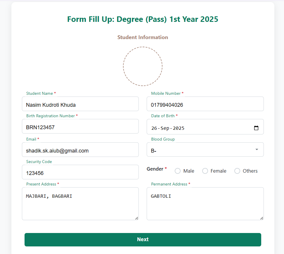 Step-1. Student Information (শিক্ষার্থী তথ্য)